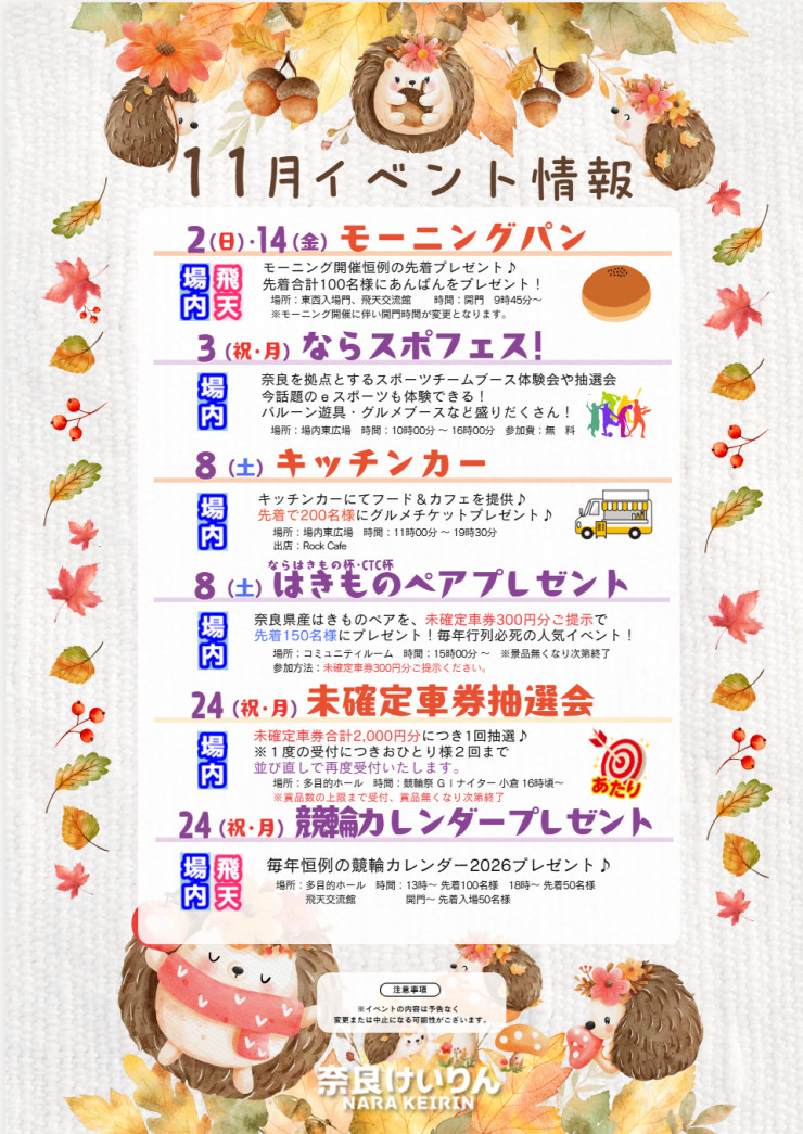 奈良けいりんTOP トピックス 【2025年11月】場内イベントのお知らせ