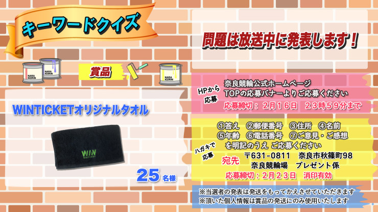2026.02.13 ミッドナイト開催のお知らせ【2/14~2/16】NEW 【開催日程】2025年2月14日(土)~2月16日(月) 【タイトル】WINTICKET杯 【CS放送】 ・放送 :693ch ・放送時間:20:03~23:40 【出演者】 ・MC:桜井 奈津 ・解説:三橋 政弘 ・実況:滝口 久 【CS放送プレゼント】 【応募はこちらから】 応募期間:2026年2月14日(土)20時00分 ~ 2月16日(月)23時59分