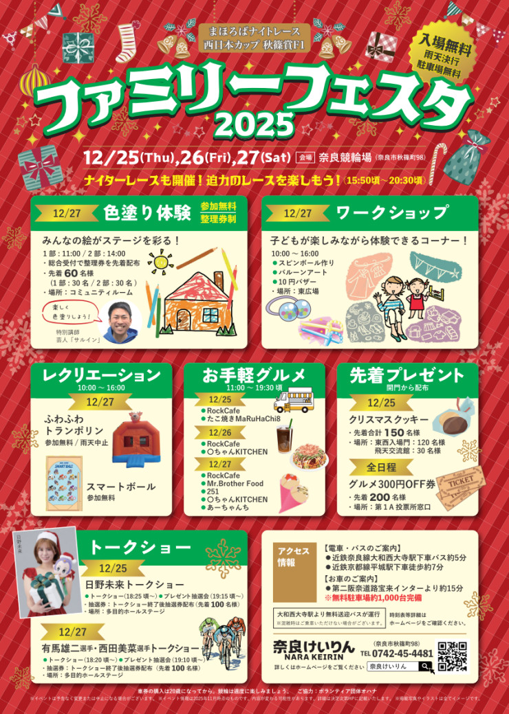 2025.12.11 西日本カップ 秋篠賞 ファミリーフェスタ★NEW ファミリーフェスタチラシ(PDFファイル:877.8KB) PDFファイルをご覧いただくためには Adobe Reader(アドビ・リーダー)が必要です。左のバナーからダウンロードできます。